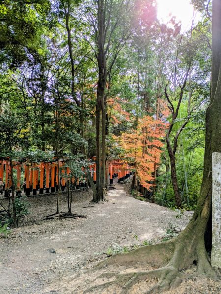 鞍馬ではもう紅葉が終わっているとのことでしたが、稲荷山はまだ紅葉が残っていました。山道を登っていくと、とてもすがすがしい気分になります。