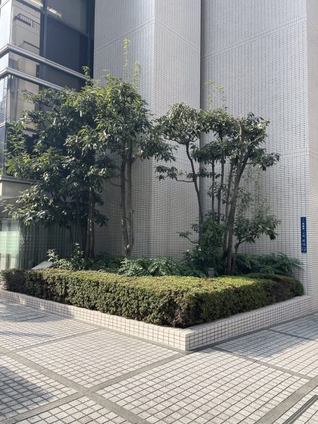 多分ビル竣工当時から植え替えたことがなかった植栽を、昔から知っているガーデナーさんに「季節感のある植栽に」という私の希望を伝え、ようやく工事が始まりました。