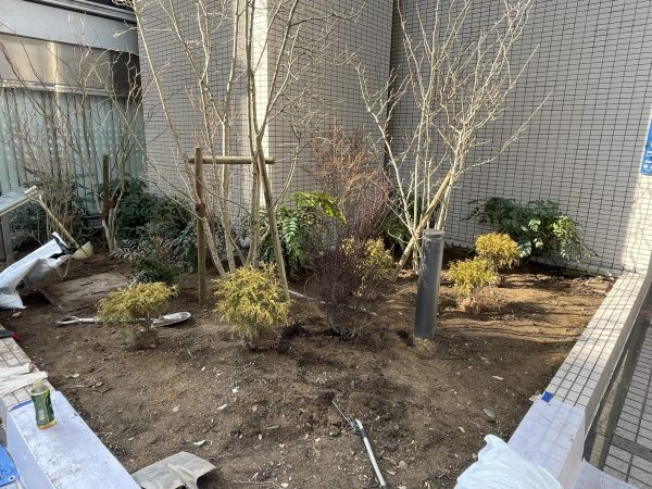 以前植えてあったものも活かしつつ、すっきりとした緑地に生まれ変わります。